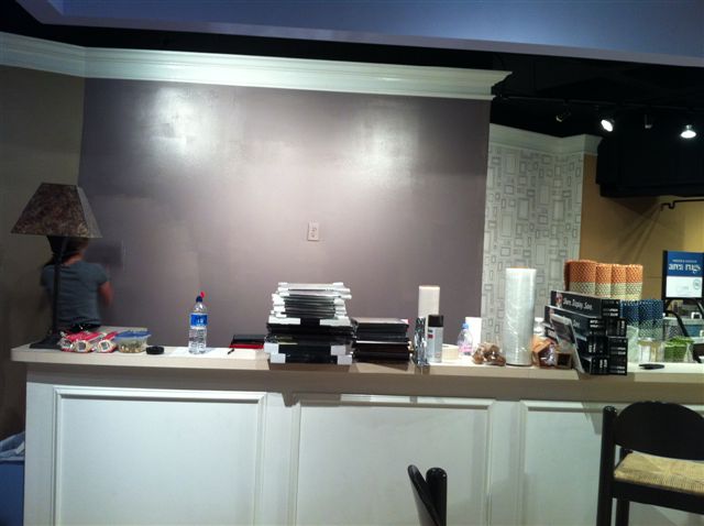 I loved this wallpaper for many reasons. At $60 a roll I was able to find something that was both stylish and incredibly easy to use. We had a fairly tight budget for the redo of our showroom interiors and were doing all of the work ourselves. Therefore, we need something that was going to be quick and easy. And of course. . . it had to look good!